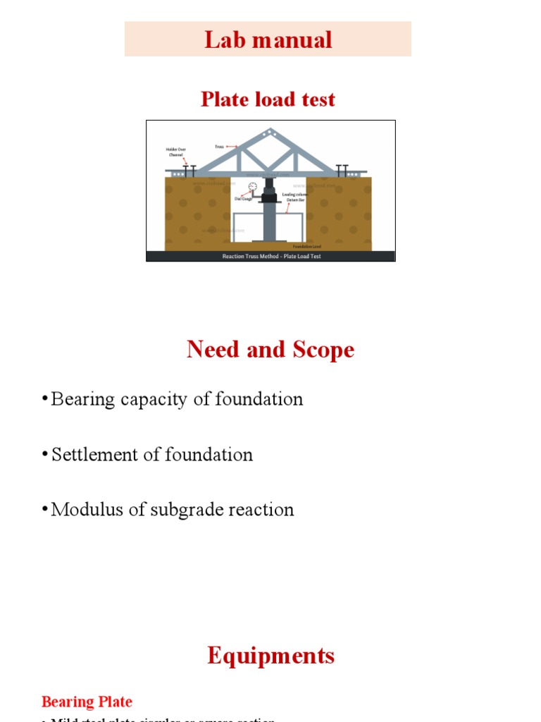 • Loading increments can be done at interval of 0.5 kN and settlement readings are