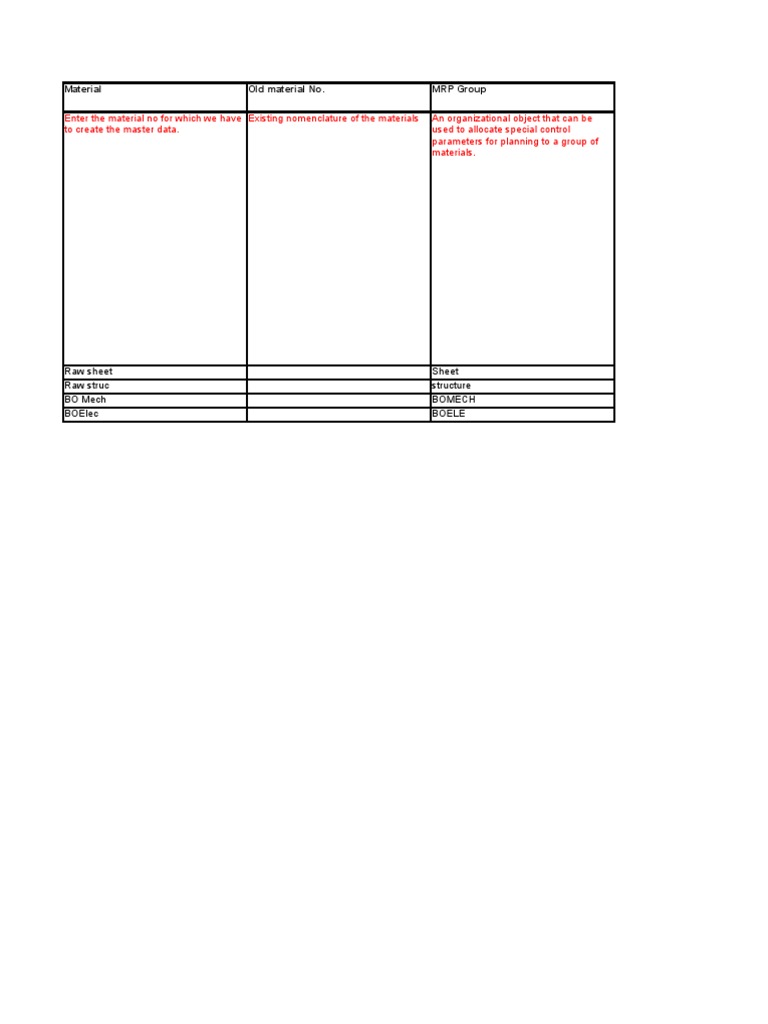 Raw sheet Raw struc BO Mech BOElec