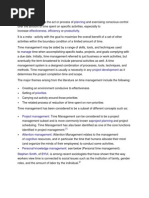 From Wikipedia, the free encyclopedia Time management is the act or process of exercising conscious control over the amount of time spent on specific activities, especially to increase efficiency or productivity. Time management may be aided by a range of skills, tools, and techniques used to manage time when accomplishing specific tasks, projects and goals. This set encompasses a wide scope of activities, and these include planning, allocating, setting goals, delegation, analysis of time spent, monitoring, organizing, scheduling, and prioritizing. Initially, time management referred to just business or work activities, but eventually the term broadened to include personal activities as well. A time management system is a designed combination of processes, tools, techniques, and methods. Usually time management is a necessity in any project development as it determines the project completion time and scope.