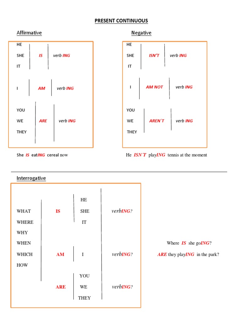 She IS eatING cereal now He ISN´T playING tennis at the moment