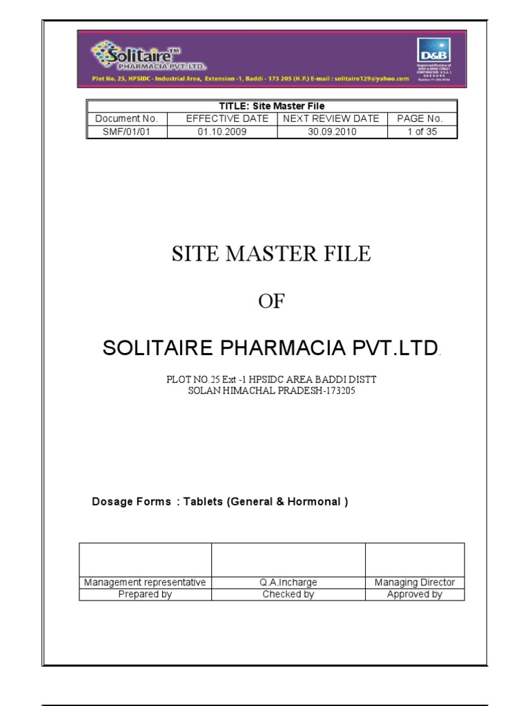 TITLE: Site Master File EFFECTIVE DATE NEXT REVIEW DATE 01.10.2009 30.09.2010