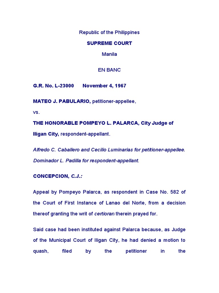 Pabulario's petition for certiorari in case No. 582 was, in turn,