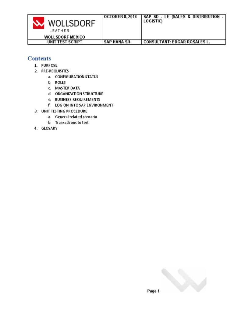 UNIT TEST SCRIPT SAP HANA S/4 CONSULTANT: EDGAR ROSALES L.