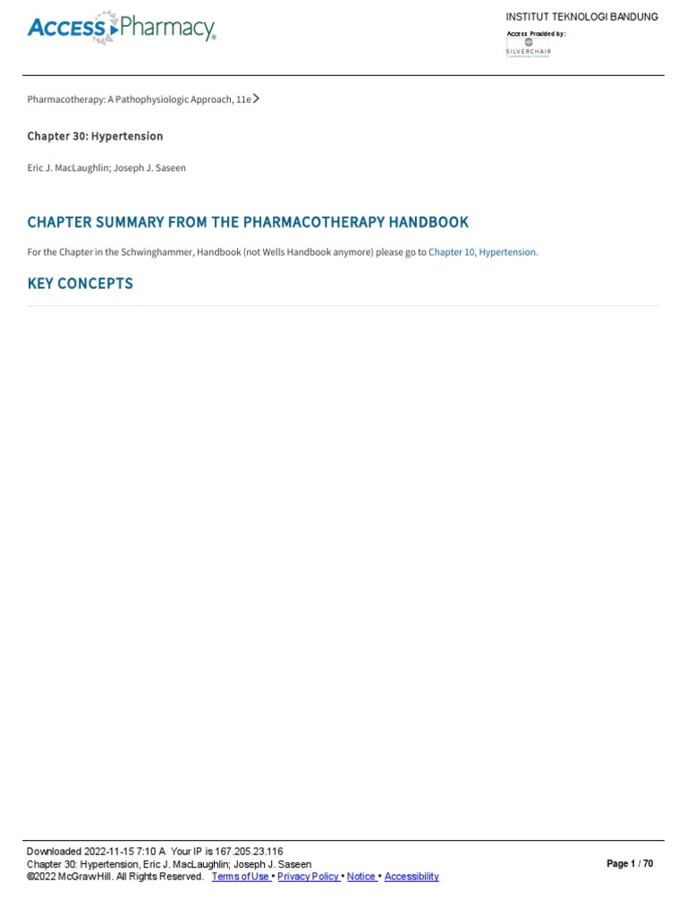 Chapter 30: Hypertension, Eric J. MacLaughlin; Joseph J. Saseen Page 1 / 70