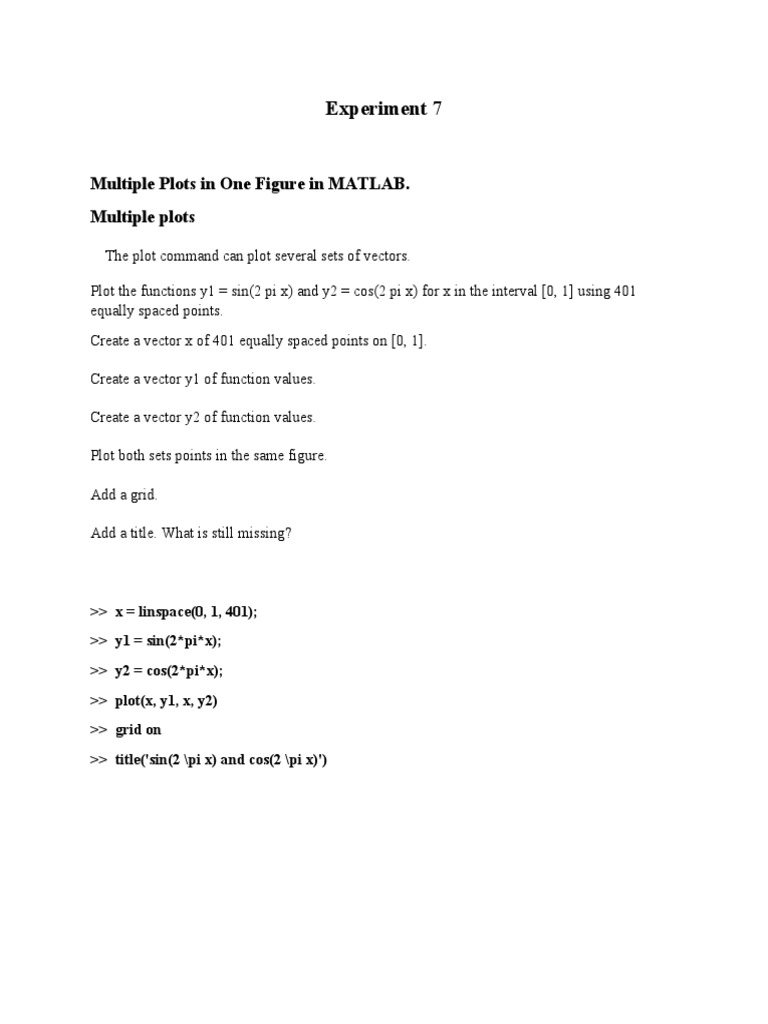 Sometimes you want a single figure containing several individual subplots. The MATLAB