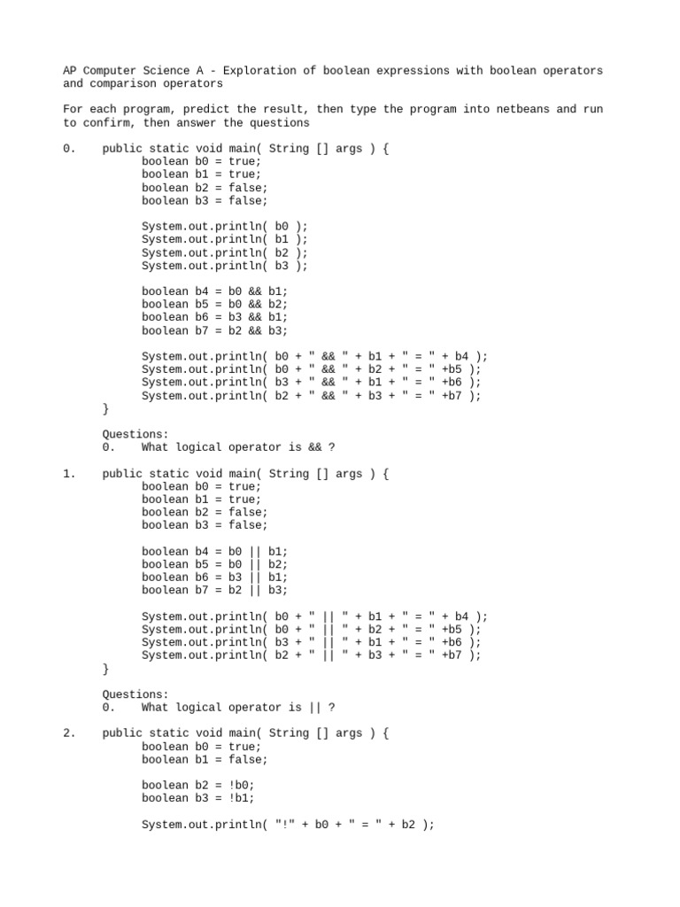 AP Computer Science A - Exploration of boolean expressions with boolean operators