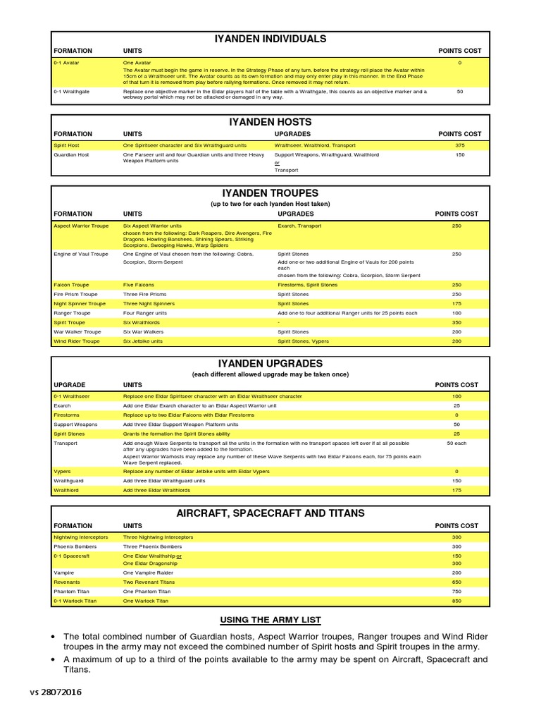 Spirit Host One Spiritseer character and Six Wraithguard units Wraithseer, Wraithlord, Transport 375