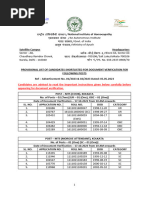 Personal Interview' of Provisionally Shortlisted applicants is given as below: