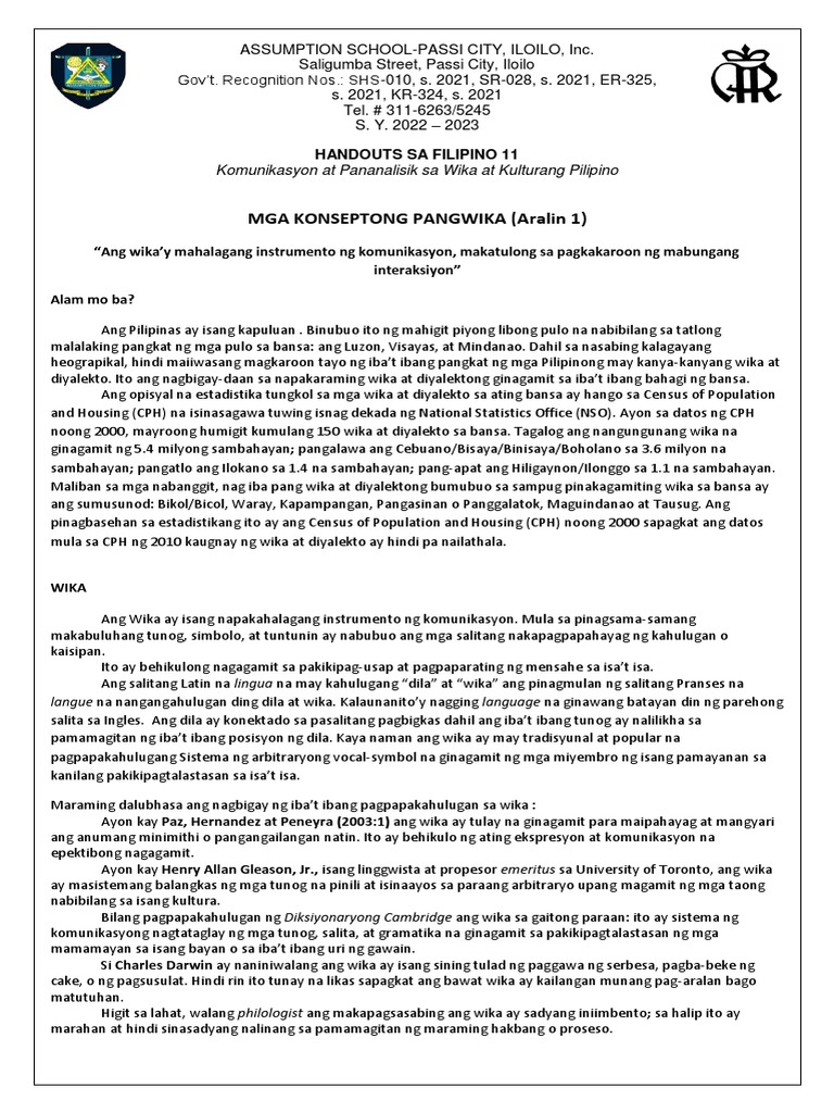 Ang Wika ay isang napakahalagang instrumento ng komunikasyon. Mula sa pinagsama-samang