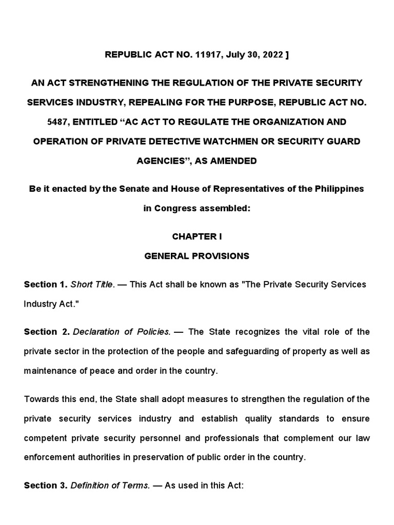 affecting the private security services industry. The PNP is mandated to review the