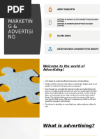 known stages inMaslows hierarchy of needs, viz. physiological needs, safety needs, need for love and belongingness, self esteem needs and self actualization needs. There are two further goalsto achieve, namely knowledge and beauty . The aspiration for knowledge arises from the need to know more and to develop greater understanding. The longing for beautyrepresents the ultimate in aesthetic [Link] hierarchy of needs may be analytically viewed as a two dimensional [Link] satisfaction of physiological or safety needs, at the lower range of the hierarchy, maynot be entirely devoid of the manifestation of needs of belongingness and love. For instance, a dish specially prepared for an occasion, such as an anniversary celebration,serves a dual purpose of a meal as well as a form of expression of closeness for the periodconcerned. Advertising has both forward and backward linkages in the process of satisfaction across the entire spectrum of needs. The explicit audience aware of theexistence of the product, service or idea would fulfill their felt needs and spell out thedifferential benefits in a competitive situation. On advertising also lies the onus, at leastmarginally, of motivating prospects to strive for creation of resources for fulfilling thenew needs, or alternatively, to aid reallocation of available resources. Advertising is notmerely directed at selling, or for that matter, at achieving the objective of gainingacceptance for a worthwhile idea or programme. It may also be an instrument for developing basic motivations for creating resources for buying goods and services or generating favourable conditions for the acceptance of an [Link] for a while on the motivational construction, the advertiser and the supportsystems, namely advertising agencies and media, have only a very limited role. Socialscientists gave advertising a form and a focus, using the base of psychology against the background of socio-economic norms. Marketing men, quick on the uptake, assimilatedthe advertising concept swiftly and adopted it as a part of the marketing mix. Needsexcavate and consumer perceptions of products and services also change, buyersattitudes towards products may be determined not merely by products as manufactured infactories, but also by what is added in the form of packaging, services, advertising,customer advice, financing, delivery arrangements, warehousing and other things that people value. Working of department and kind of services to be provided: Advertising is an all-pervasive facet of most growing communities. It has importantconsequences for the advertisers who use it and for individuals who are exposed to [Link], its economic and social impact is a subject of continuous controversy. Thefollowing aspects illustrate the basic purpose of advertising: 1) Communication with Consumer There is an increasing need for information about a wide variety of products as theeconomy expands and grows more complex. Advertising is a major way of establishingcommunications between manufactures and other organisations providing services or trying to put across ideas and concepts, on the one hand, and customers, buyers and potential acceptors, on the other. Advertising is a reminder to the existing consumers andit aims at cultivating new prospects as well. Advertising has, therefore, been described aseffective communication with the target audience 2) Persuasion Advertising attempts to persuade prospective buyers to buy a product/service. Accordingto Clyde Miller, all success in business, industry and similar activities depends upon the process of planned persuasion. In modern markets, the producer who is content withadvertising that merely identifies or informs may soon find