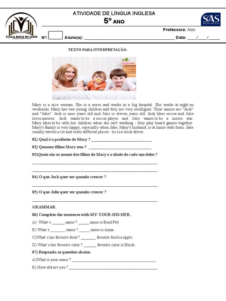 01) Qual é a profissão de Mary ? _____________________________