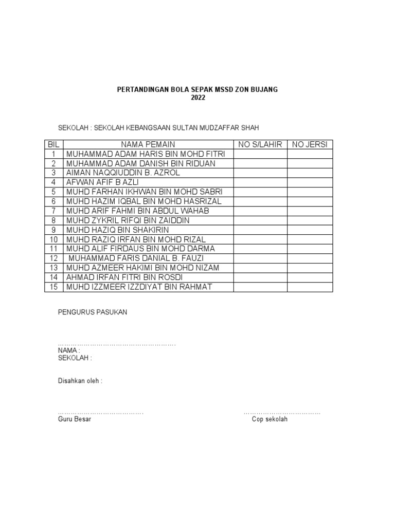 BIL NAMA PEMAIN NO S/LAHIR NO JERSI