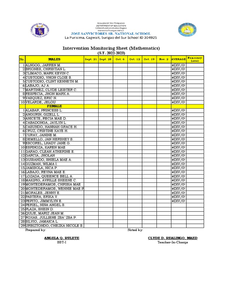 22 DELA CRUZ, MARIA B. #DIV/0!