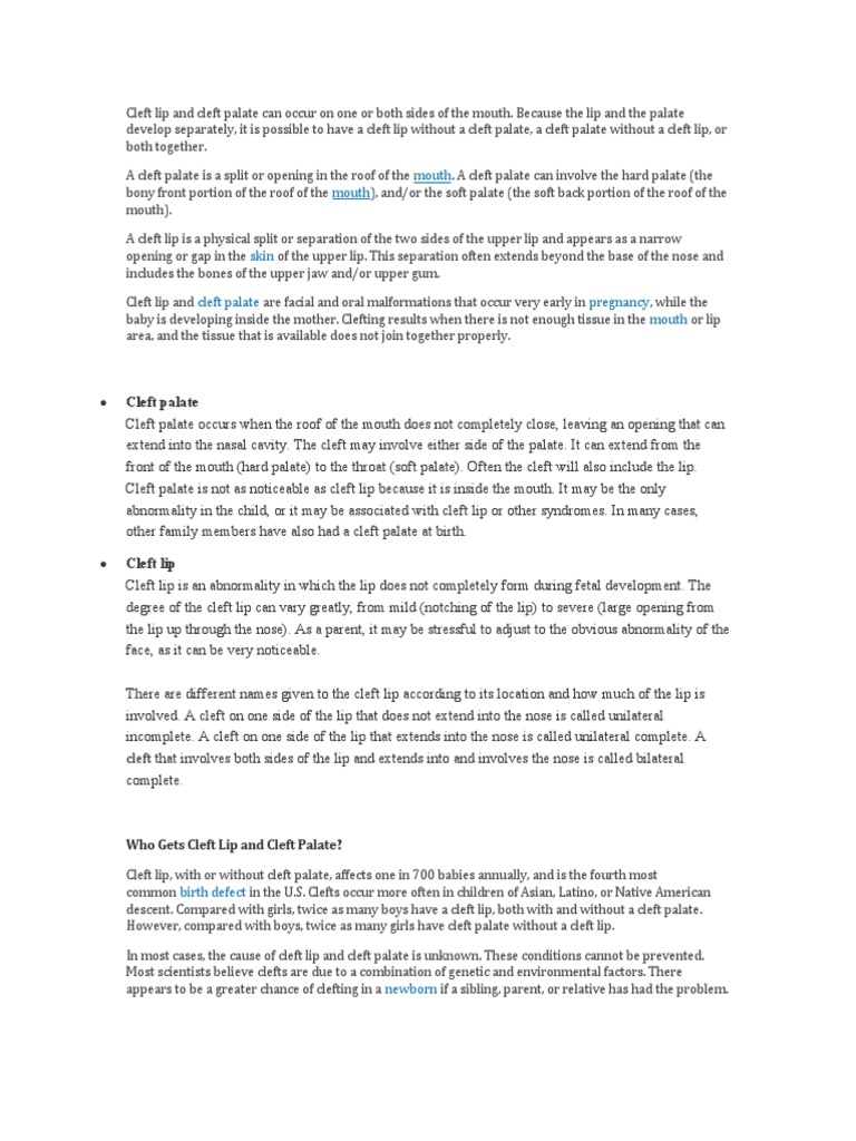 baby is developing inside the mother. Clefting results when there is not enough tissue in the mouth or lip