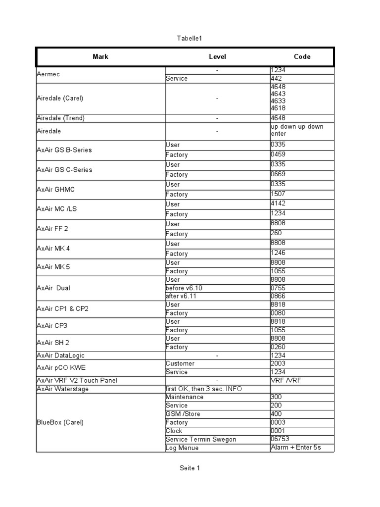 Carel pCO1000 pGD Terminal EXV settings (Menu + Prog) 0013