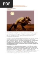 Kneeling down, the priest scrambled under the entrance to the cave and squatted beside the she-wolf. There was a great wound on her flank from which part of the shaft of an arrow still stuck out. The priest moved closer to the dying animal. 'Who are you?' he whispered. 'What are you?' The female further licked her head with some difficulty and blood bubbled between her wolf-lips. 'My husband may have already told you', she answered. 'We are the Werewolves of Ossory, condemned to live in this guise for a season. We are sometimes hunted for our pelts which are extremely valuable and I have been wounded by hunters. I desire to die with the Holy Offices of a priest. Hear my confession and grant me your blessing, Father'. The priest nodded hesitantly. 'You think we are evil', went on the she-wolf. 'You think that this is some trick of the Evil One, sent to lure you away from the sacred paths of the Church.' The priest nodded again. 'Yet we readily acknowledge the name of God, of Jesus Christ His Son and of the Virgin Mary. What creature of evil could do that? I tell you that underneath this fearsome form we are as human and as Christian as yourself, Father.' The priest still seemed uncertain. 'What will it take to convince you?' asked the male wolf, rearing up on its hind-legs. 'If I were to walk like a man would that set your mind at rest that we are truly human?' The priest hesitated. 'We will do anything to convince you, if you will hear my wife's confession!' The priest licked his dry lips uneasily. 'You say that you are human', he answered, 'but ... but I see only the animal. And certainly you speak like mortals and yet your words come in the rough grunts of the beast. If ... if I could but see the human which you say lurks beneath the wolf-skin, then my mind would be at rest.' The female wolf straightened herself painfully. The priest drew back in alarm but then saw that she did not mean to threaten him. 'Very well', she said. 'In the name of the living God, behold my true face.' And she brought her right forepaw to her jaws and began to gnaw and bite at the skin. Blood spurted out and part of the leg fell away to reveal the fingers of a human hand below. Raising the hand to its belly, the female wolf proceeded to rip and tear at the flesh there, pulling it back and opening it as though it was a hairy garment. The wolf-head seemed to fall away like a woollen mask and, beneath skin and membrane, the priest thought that he saw another, human head. This was the head of an old woman, thin and brown-skinned, narrow and with hair plastered across the sides of the face. 'Jesu!' he muttered, crossing himself. The woman's ancient mouth worked to form words. 'There, Father', said the old lady's voice. 'Now do you believe? Beneath that wolf-body we are indeed human.' She worked and tore through sinew and gristle, allowing her liKle head to poke out through. 'Now, Father', said the male wolf. 'You have heard our tale, you know that we are human and are true believers. Will you hear my wife's confession and grant her the absolution