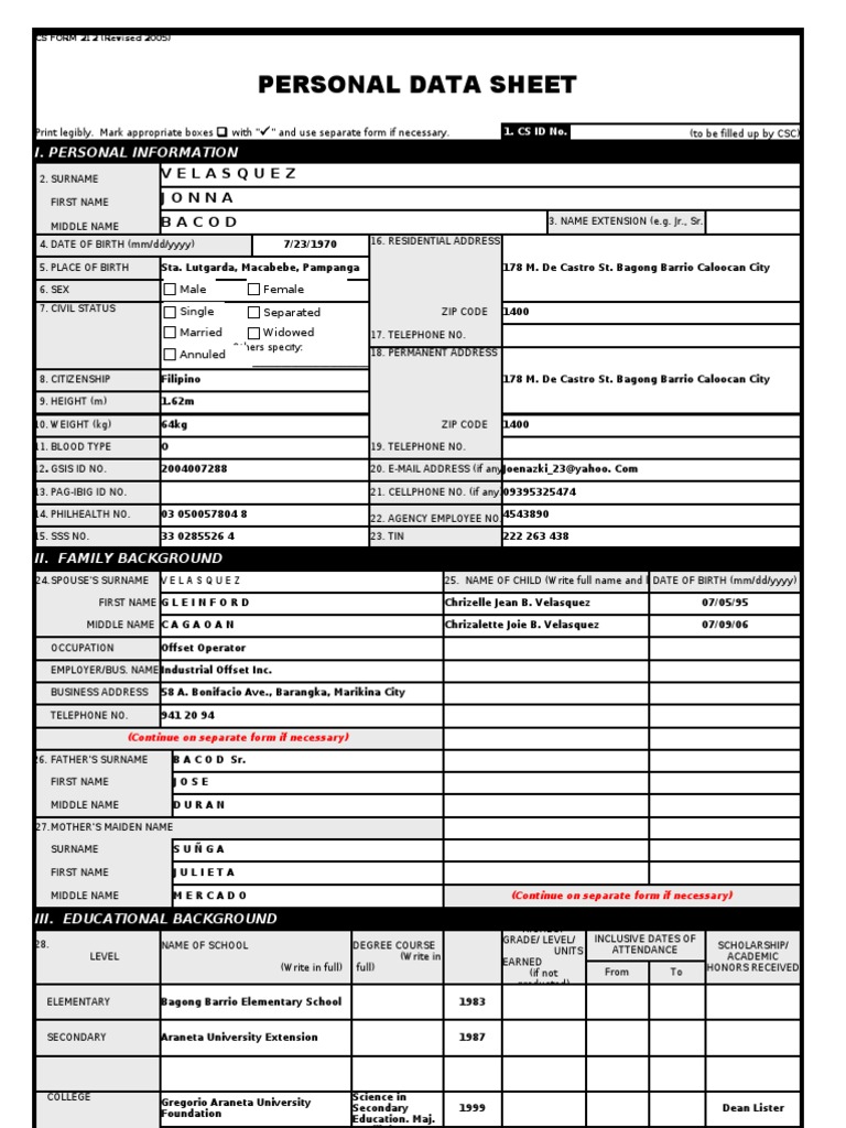 PERSONAL DATA SHEET
