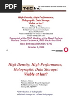 Wide range of p y g physical p phenomena for data reading and g recording have been investigated. Large numbers of chemical systems for the medium have been developed. Extensive work has been carried out in solving the problems associated with the optical systems required for the reading and recording of data. Currently, several groups remain working on solutions with various levels of development and interest in commercialization.
