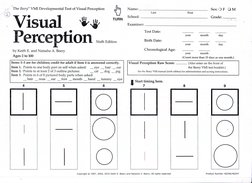 Introduction and Instructions: Provides the introduction and instructions for conducting the Visual Perception test, including fields for personal information and starting guidance.