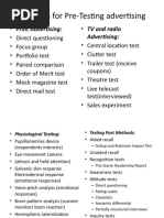 broadcasting, or telecasting. Following are the types of pre-testing methods:
