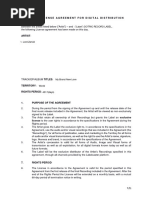 ARTIST's Royalties when due or to accurately report Net Sales and the failure is not corrected within thirty days after written notice from ARTIST. If this Agreement is breached because of a failure to pay or accurately report royalties all rights granted under this agreement shall revert to ARTIST and RECORD LABEL shall have no further rights regarding ARTIST or the Master Recordings. If this Agreement is terminated for any reason other than RECORD LABEL' failure to pay or accurately report ARTIST' Royalties, all rights licensed to the RECORD LABEL regarding ARTIST or the master recordings will remain property of RECORD LABEL. ARTIST hereby warrants that he has not entered the recordings licensed to RECORD LABEL into any oral or written obligations, contracts, or agreements of any nature prior to the signing of this agreement which is now in force and binding and which would in any way interfere with carrying out this agreement to its full intent and purpose. (double signing tracks). ARTIST also agrees that all music is original or made with copyright free samples, and takes all liability for copyright infringement. GOVERNING LAW: This agreement shall be governed by the laws and in the courts of the United Kingdom. Any dispute or legal proceeding regarding the agreement shall take place in the country of England, United Kingdom. Your signature below will constitute this as a binding agreement between us. DATED: _______________________ AGREED TO AND ACCEPTED For Artist Name: Address: City: Telephone: Signature: For Agent