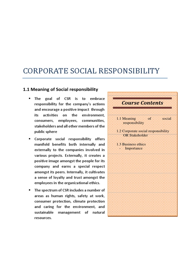 responsibility for the company's actions Course Contents