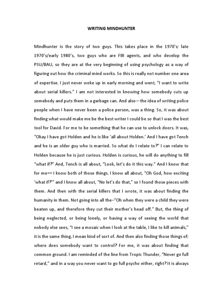 rules. And even the concept of Mindhunter breaks those rules– writing interview