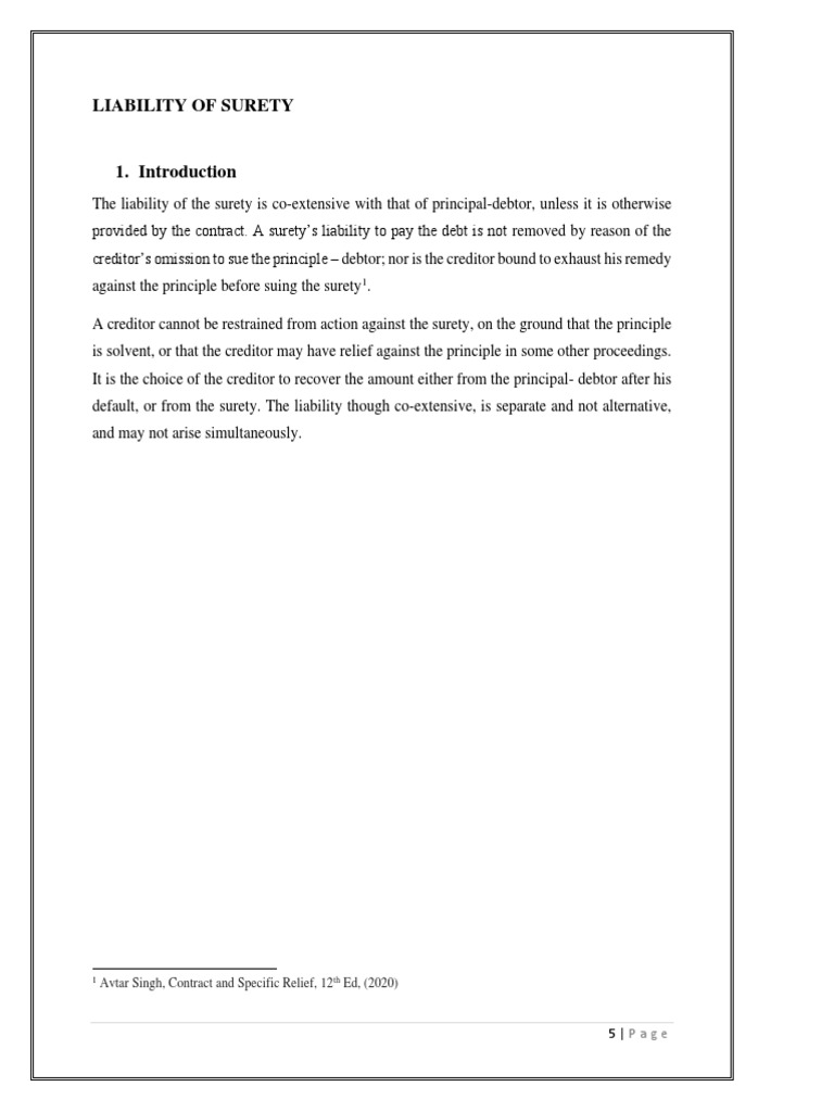 amount of the liability will fall on the shoulders of the surety. Surety will also be responsible