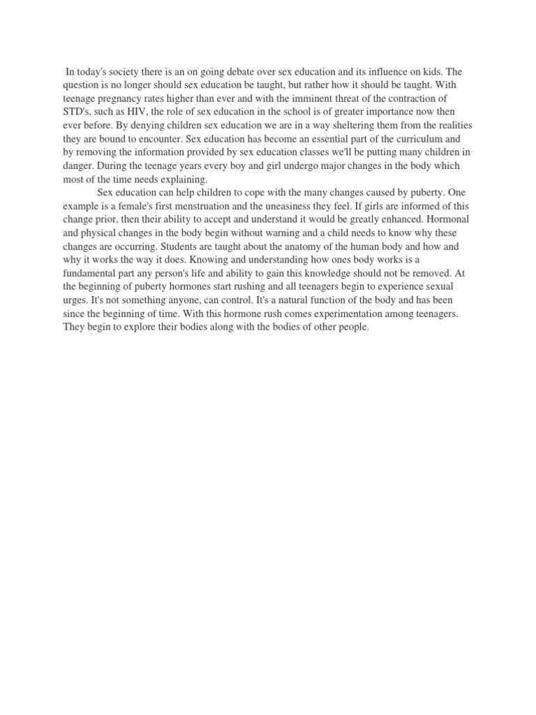In today's society there is an on going debate over sex education and its influence on kids.