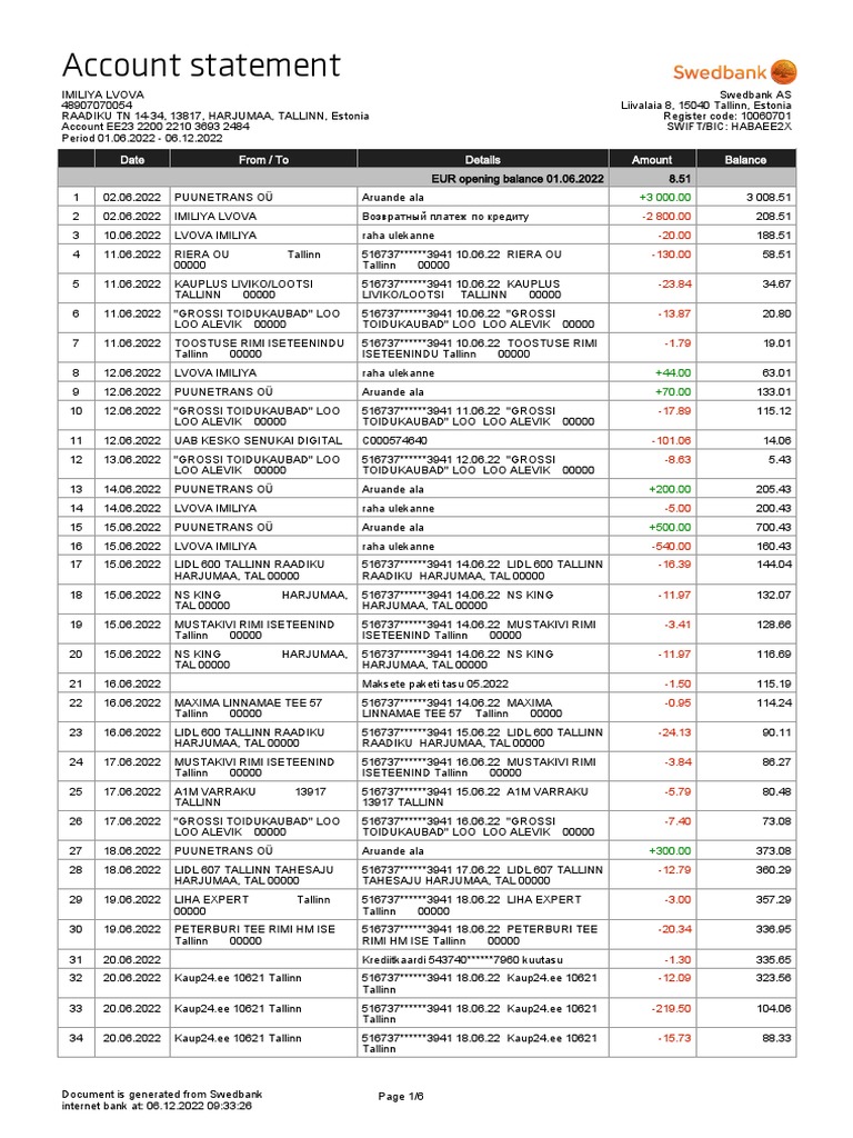 Document is generated from Swedbank Page 6/6