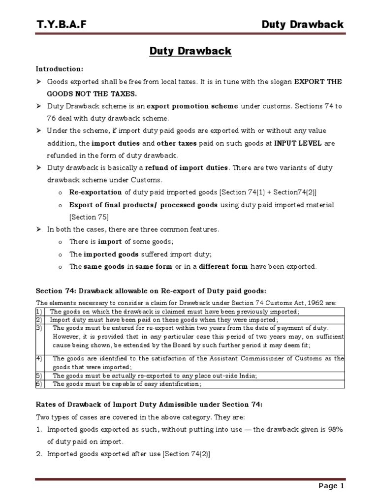 drawback scheme under Customs.