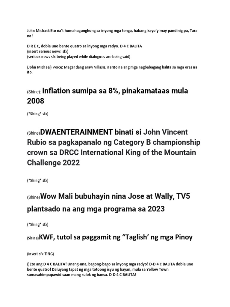 (John Michael) Voice: Magandang araw Villasis, narito na ang mga nagbabagang balita sa mga oras na