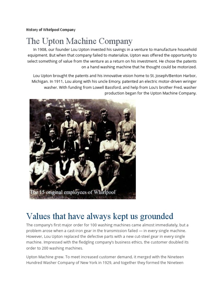 Training sessions. Despite this strong track record, Whirlpool Corporation is in