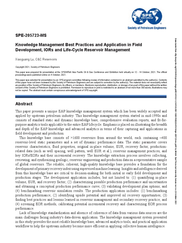 applied by upstream petroleum industry. This knowledge management system started in mid-1990s and