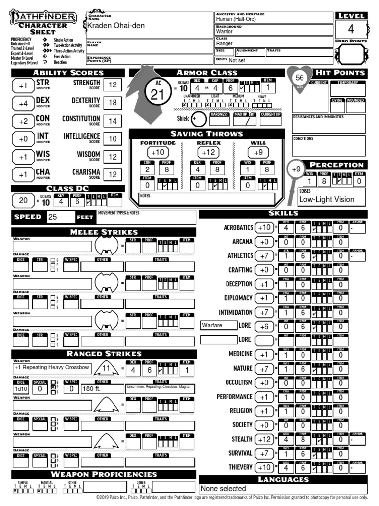 ©2019 Paizo Inc., Paizo, Pathfinder, and the Pathfinder logo are registered trademarks of Paizo Inc. Permission granted to photocopy for personal use only.