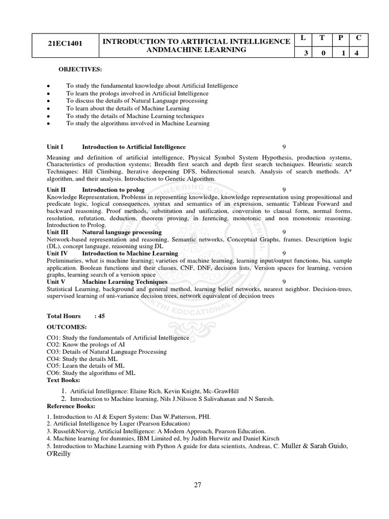 • To study the details of Machine Learning techniques