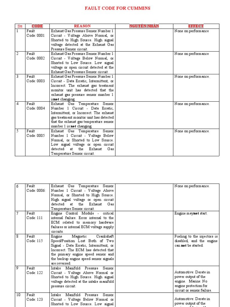 FAULT CODE FOR CUMMINS