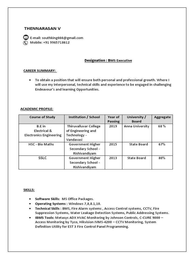 • Technical Skills : BMS, Fire Alarm systems , Access Control systems, CCTV, Fire