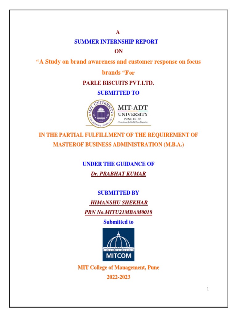 year full time MBA program of MIT-ADT University, Pune. This report has not