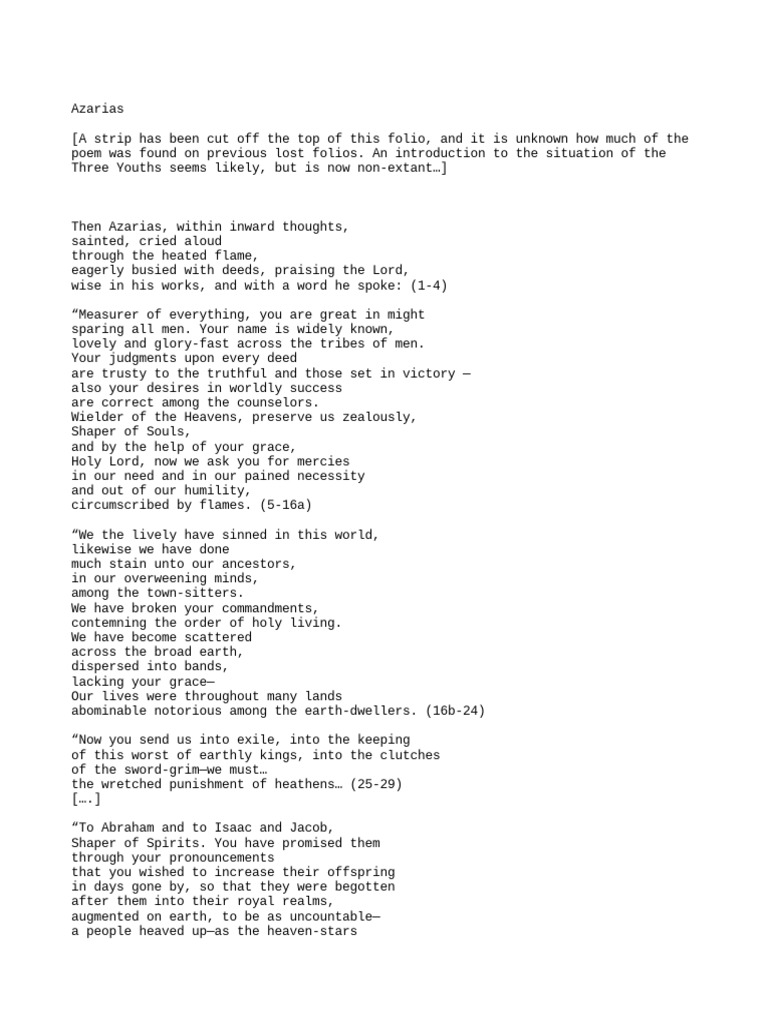 Then Azarias, within inward thoughts,