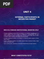 The term is used most commonly in India to refer to outside companies investing in the financial markets of India. International institutional investors must register with the Securities and Exchange Board of India to participate in the market. One of the major market regulations pertaining to FIIs involves placing limits on FII ownership in Indian companies