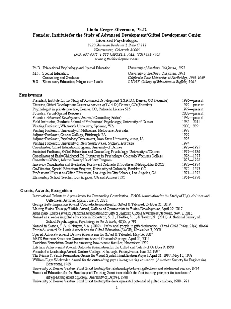 Director, Gifted Development Center (a service of I.S.A.D.) Denver, CO (Founder) 1979—present