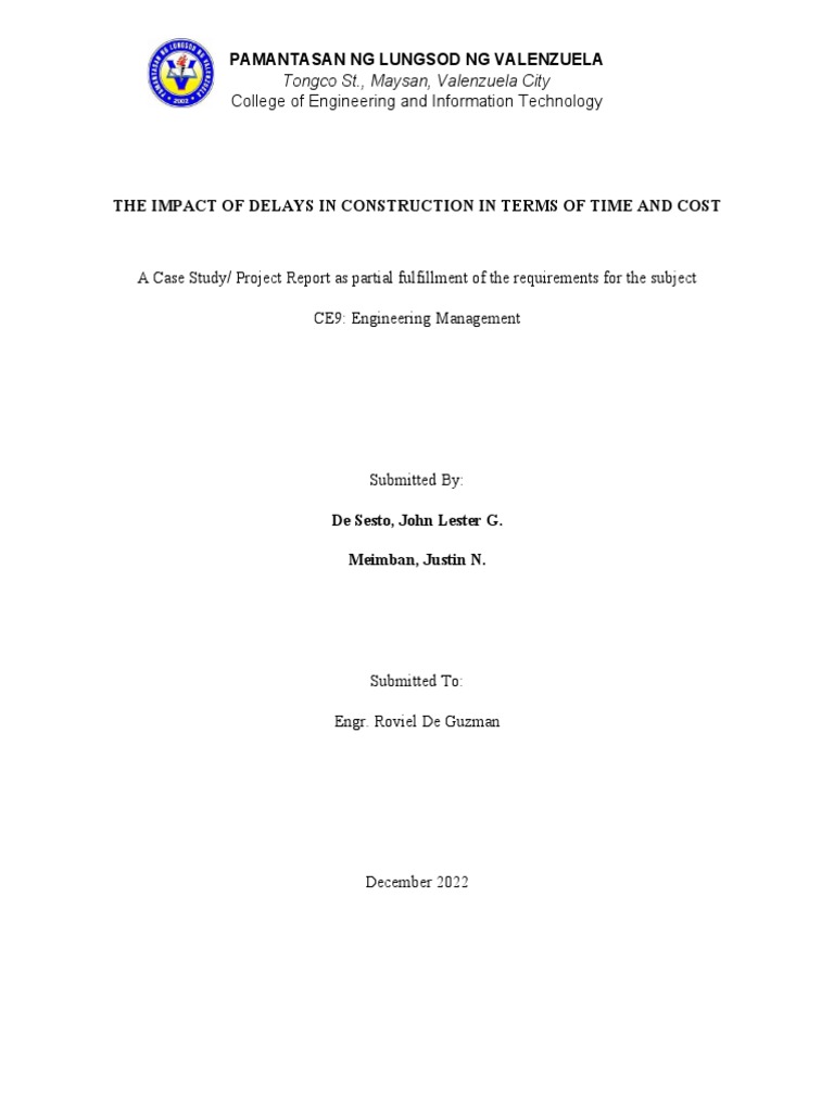 preventing time and cost overruns. Delays in a construction project can have a wide range of