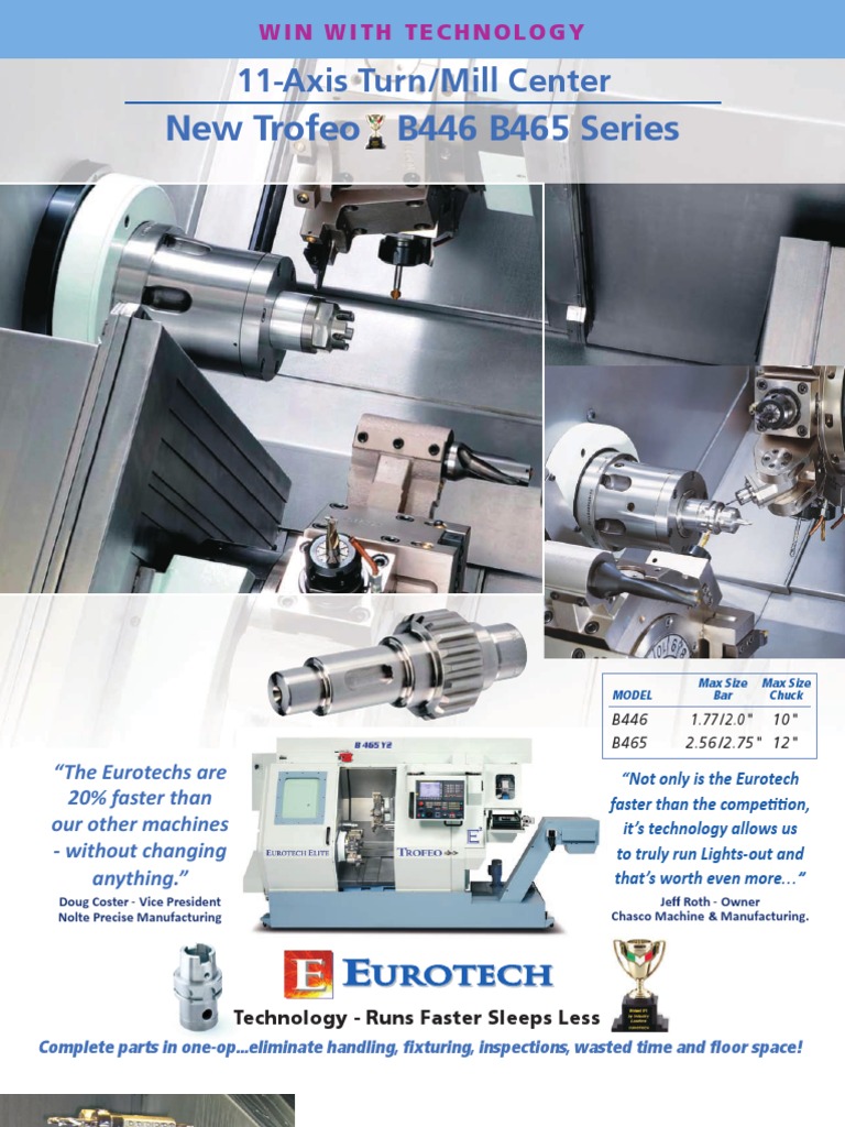 Complete parts in one-op...eliminate handling, xturing, inspections, wasted time and oor space!