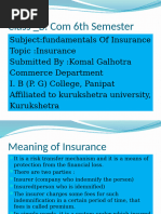 Insurance policy The printed form, which serves as the contract between an insurer and an