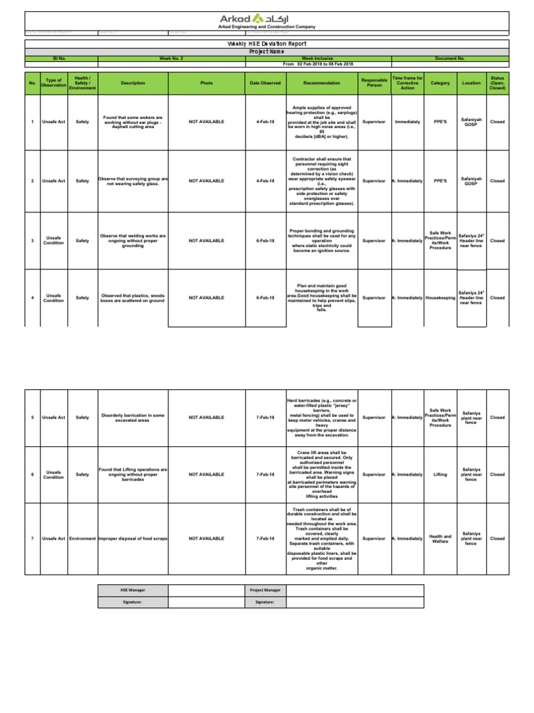 Form No. :ARK-P050-HS-FRM-00011 Revision No. A Revision Date: Title: Weekly HSE Deviation Report