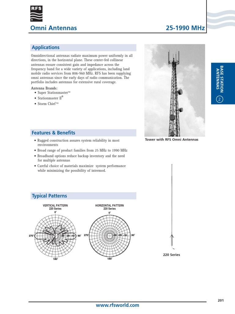 • Rugged construction assures system reliability in most Tower with RFS Omni Antennas