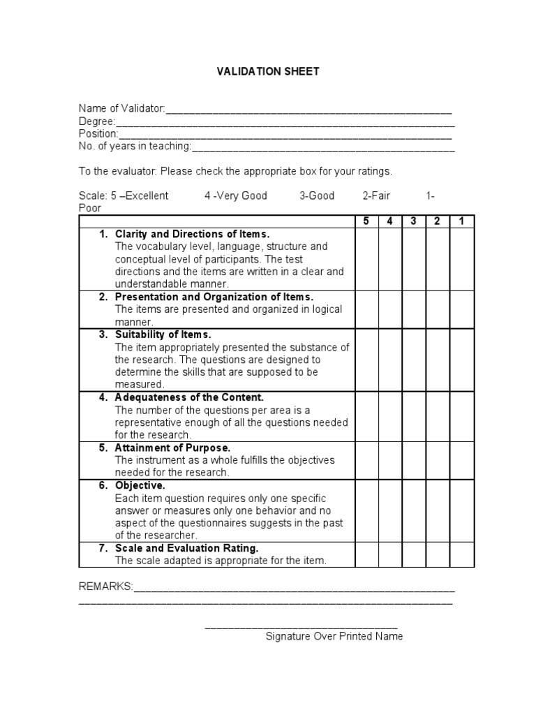 Scale: 5 –Excellent 4 -Very Good 3-Good 2-Fair 1-