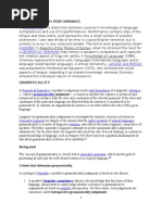 speaker-hearer's knowledge of his language) and performance (the actual use of language in concrete